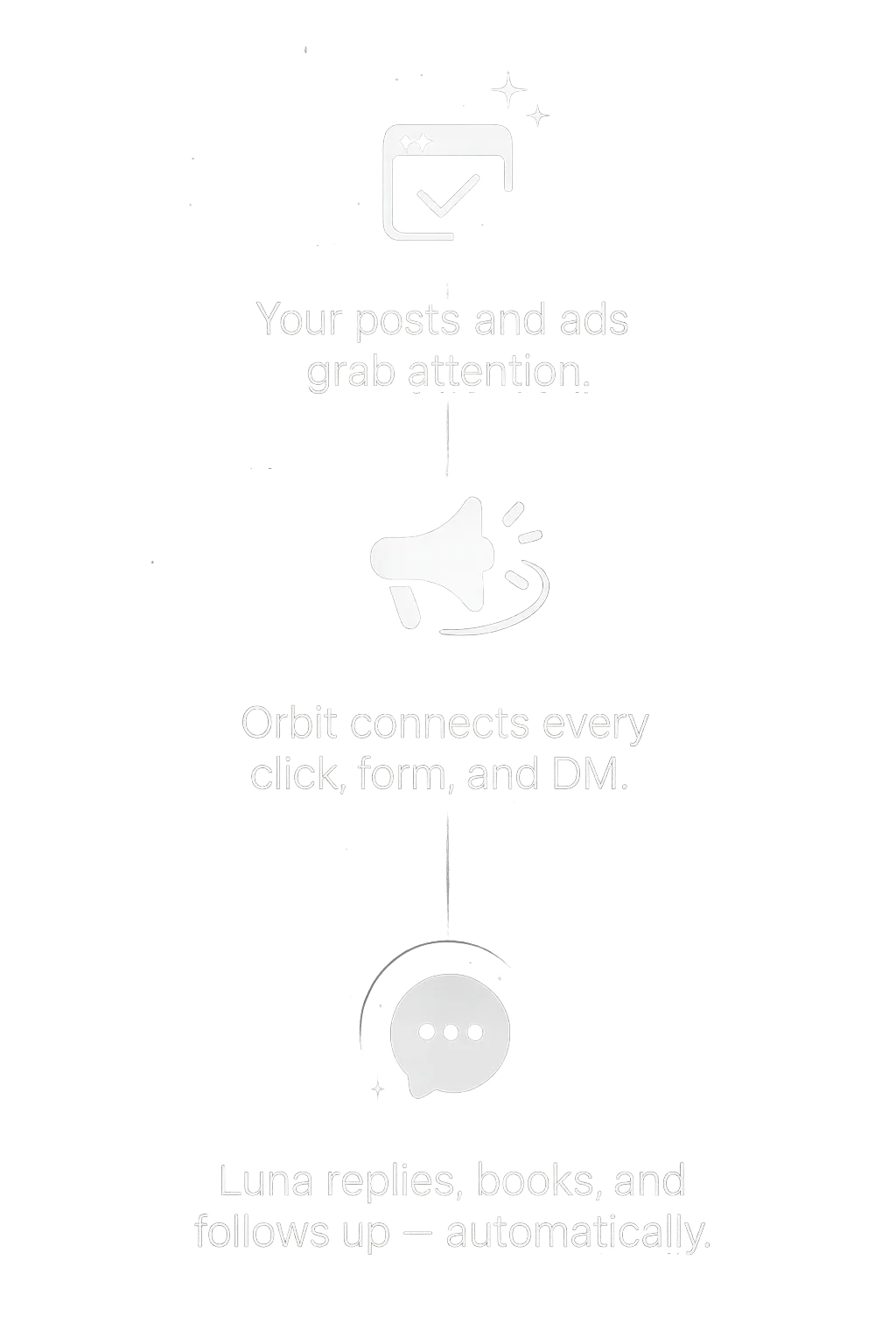 Luna chats with leads, collects info, sends booking links, and follows up automatically. She keeps your business orbiting.